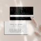 Cartões de lembrete de compromisso elegantes para salões, estéticos ou maquiadores apresentam cartazes brancos clássicos em um fundo preto suave e rico, com fios verticais de luzes de cordas de folhas de rosa douradas falsas em cascata a partir do topo. Inclui espaço para escrever na data e hora do próximo compromisso do cliente, com a política de cancelamento personalizada abaixo. Adicione seu nome ou nome comercial e detalhes de contato ao lado inverso.