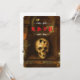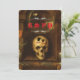 Convite de casamento de Halloween com caveira e aranhas. Confirmação de presença para casamento gótico para acompanhar o convite de casamento no mesmo design. Aranhas assustadoras rastejam por uma caveira, a caminho de se tornarem Sr. e Sra.