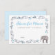 Reúna conselhos para a futura mamãe no chá de bebê com esses doces cartões de conselho que fazem lindas lembranças para a mãe. Florais modernos azuis e cinzas e um elefante bebê adornam este design. © Mini Moi Prints