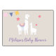 Estas adoráveis cartas de chá de fraldas mostram uma linda lhama e sua lhama bebê com texto lilac. Personalize o texto deste design.
