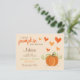Estes cartões de conselho de abóbora são perfeitos para quem celebra um chá de fraldas neste outono. A design apresenta uma abóbora laranja fofa com corações amorosos e palavras de modelo fáceis de personalizar. Itens correspondentes podem ser encontrados na coleção.