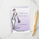 Noiva para ser cartão de conselho, com uma noiva elegante em um fundo roxo. Os cartões de chá de panela são uma maneira divertida e pessoal de os hóspedes darem seus conselhos para um casamento feliz! A noiva vai acalentar essas palavras de sabedoria por anos!