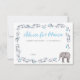 Reúna conselhos para a futura mamãe no chá de bebê com esses doces cartões de conselhos para chá de bebê que fazem lindas lembranças para a futura mãe. Florais modernos e bonitos em azul e cinza e um elefante bebê adornam este design.