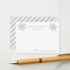 Este cartão de conselho para chá de bebê simples e fofo apresenta um fundo branco com flocos de neve prateados brilhantes falsos. O verso apresenta um fundo branco com listras diagonais prateadas falsas. Você pode encontrar produtos correspondentes na minha loja.