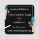 Cartões de visitas pretos quadrados para educadores, com coruja azul e algumas maçãs. Personalizá-los com seu nome, cargo, agenda de disponibilidade, número de telefone de contato e endereço de e-mail, para que os potenciais empregadores possam acessá-lo facilmente. © ArianeC Ilustrações — Todos os direitos reservados