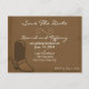 Cartões-postais de casamento country para salvar a data, apresentando uma cor marrom com um design gráfico de bota de cowboy. Esses cartões de salvar a data de casamento são totalmente personalizáveis e podem ser facilmente personalizados por você.