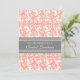 Convites de almoço de noiva em elegante cor de laranja de pêssego, cinza e padrão clássico de colheita floral, chic e feminino, personalizáveis com seus detalhes de chá. Também disponível em cartões de agradecimento e convites para a festa noiva.