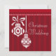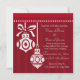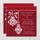 Convites de Natal de Casamento em branco e vermelho clássico com listras e enfeites de natal elegantes, personalizáveis com seus detalhes de casamento. Disponível em carimbos de férias de inverno, envelopes, etiquetas e cartões correspondentes. Perfeito para um casamento de Natal ou dezembro.