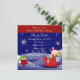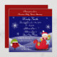 Um cartão de convite para chás de fraldas festivos que oferece uma faixa vermelha para o topo da placa junto com um fundo azul de neve com flocos de neve brilhantes flutuando lentamente até o fundo da placa. O fundo foi combinado com um pequeno bebê de Natal parado em um trenó vermelho na parte inferior direita do cartão, junto com um pequeno assalto à esquerda do cartão. A frente do cartão também oferece informações de cheio que podem ser personalizadas com seus próprios detalhes de chá de fraldas de Natal. Sacudir o cartão para encontrar uma cor de fundo vermelha de Natal na parte traseira do cartão. Excelente para uma festa de chá de fraldas de Natal de uma garota, um menino ou um neutro. Visite a loja para encontrar produtos de Natal de chá de fraldas correspondentes para complementar seu tema.