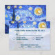 O cartão de RSVP de convite de casamento apresenta uma pintura artística em tributo à "Noite Estrelada" de Van Gogh. Possui cores mais brilhantes e incorpora brilho em sua imagem final para uma noite cintilante. Personalize esses cartões de RSVP de convite de casamento com todos os seus detalhes pessoais para convites temáticos de casamento artísticos.
