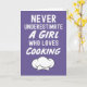 **Título:** Cartões Cor-de-Rosa de Culinária Fofo para Meninas - Nunca Subestime uma Menina que Ama Cozinhar Cartão de Cumprimentos