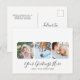 Crie seus próprios cartões-postais de cumprimentos elegantes com este modelo de cartões de cumprimentos modernos brancos personalizados, apresentando 3 fotos personalizadas da família em quadrados, uma fonte de letra manuscrita elegante e uma fonte sans serif minimalista e profissional. Esses cartões-postais de cumprimentos simples são universais e úteis para aniversário, qualquer feriado, Páscoa, agradecimento, congratulações, cartões de Natal e cartões de cumprimentos de temporada e muito mais. Crie seu próprio cartão-postal único adicionando suas próprias imagens, mensagem de cumprimentos, ano, nomes e mensagem completa no verso.
