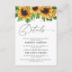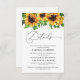 Cartões de Detalhes de Casamento de Girassol. Este convite de casamento elegante e sofisticado apresenta belos Girassóis pintados à mão em aquarela. Encontre itens correspondentes na Coleção de Folhagens de Girassol.