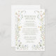 Mergulhe na elegância contemporânea com este cartão de detalhes projetado para um casamento boêmio romântico. Adornado com motivos de flores silvestres entrelaçados em uma coroa floral elegante. Este cartão personalizável permite que você personalize sua experiência de casamento, adicionando um toque moderno com um monograma opcional no verso, aumentando a sofisticação geral de sua celebração.