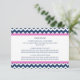 Placas de direção para o casamento em azul-marinho escuro elegante e moderno, padrão fúcsia cor-de-rosa brilhante e zigzag chevron. Personalize essas cartas com as instruções do casamento ou outras informações a serem incluídas nos convites para o casamento, também perfeito para festas de aniversário ou festas de aniversário. Disponível em uma grande variedade de produtos de casamento correspondentes.