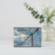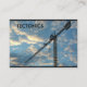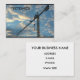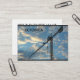 Cartão de negócios mostra uma grua em um local com céu azul e nuvens como fundo