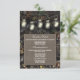 Cartões de Envio de Casamento Camuflados em Pote de Mason - para informações de hotel/recepção - apresentam potes de mason iluminados pendurados com um fundo camuflado de caça na frente e atrás com uma caixa de texto de aniagem marrom na frente.
