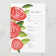 Cartão de menu de flores de rosa vermelha lindo e elegante é ótimo para um design coerente de casamento boho e rústico.