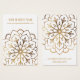 Estas cartas foram feitas para complementar o estilo glamouroso e único dos seus designs de brinco artístico. Ele contém modelo para adicionar os detalhes de contato da sua empresa, sobre um plano de fundo branco editável coberto por um gráfico de papel dourado falso mandala. Todas as camadas foram adicionadas separadamente e são desbloqueadas, o que lhe dá o controle de cheio de design de sobre essas placas. Altere as cores, posições e fontes conforme desejar. // Concebida por Melody Watson para Paper Muserie.