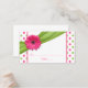 Daisy gerbera rosa, bolinhas verdes e brancas cor-de-rosa e cartazes especiais de ocasião ou cartões de escolta. Para fazer alterações nas placas (fonte, cor da fonte, tamanho da fonte, posicionamento do texto ou para remover o texto), use a opção personalizá-lo. O tamanho da placa é de 3,5" x 2,0" e tudo o que é necessário são alguns titulares de cartão de lugar se você quiser usá-los. Este cartão de lugar de margarida germano vai funcionar bem para um aniversário, Bat Mitzvah, confirmação, Primeira Comunhão, etc. Nota, são ordenados em lotes de 100 no mínimo.
