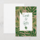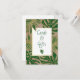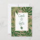 Folhas tropicais verdes e góis, cartões de casamento e sinal de presentes. Esta design tropical apresenta folhas de Split Leaf Philodendron (Monstera deliciosa) ou de Queijo Suíço em verde com contorno de ouro em papel de aparência kraft. Coloque seu texto no quadro branco com contorno de ouro.