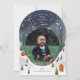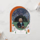 Ilustração original de uma aldeia de encosta nevada para rodear a sua fotografia fofa. Personalize ainda mais para adicionar mais texto ou mais fotos no verso. Cortar o diâmetro opcional
