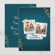 Cartões de foto de Natal de cor verde com saudaçõe