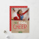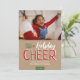 cartões com fotos de feriado personalizados com barato simples para personalização. Esta design moderna tem uma mistura festiva de tipografia em vermelho, verde e branco sobre um fundo de papel kraft falso. O texto diz "Holiday Cheer". Personalize-o com suas fotos e adicione seu nome de família e o ano. O verso tem espaço para fotos e texto adicionais. Use as ferramentas de design para editar o texto, adicionar mais fotos e criar um design de Cartões de foto de Natal exclusivo.