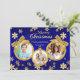 Cartões de foto de Natal de ornamentos Azul e Dour