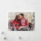 Moldura de floco de neve balnear circundando a foto do tamanho do cheio. Este cartão de Natal pode ser preenchido com qualquer fotografia para lhe dar o toque mágico da estação. Flocos de neve brancos e suaves criam uma moldura que faz dele o cartão de saudação de Natal clássico ideal.