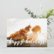 Cartões de foto de Natal de Script de Feriados Felizes em branco. Sua foto no verso ou o padrão atual de apoio. Lindo estilo de roteiro de caligrafia. Estilo de inscrição. Grande design de fotografia. desenho de trás.