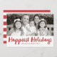 O Cartões de foto de Natal Red Script Holidays mais Feliz foi projetado para ser um cartão de Natal simples e moderno - perfeito para esta temporada de inverno. Isto está disponível com um carimbo de correio correspondente, por isso certifique-se de que está a verificar a nossa coleção de correio para obter atualizações!