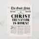 Eu criei este título de jornal do falso para o cartão de Natal da família deste ano. Eu quis um design original que expressasse a importância da estação Jesus do Natal. Que olharia como se era nascido em nossa cultura obcecada meios? Uma história de tal importância merece um título apropriado! A parte traseira continua com o tema e tem um lugar para criar seus próprios "anúncio pessoal" de modo que você possa desejar que seus família e amigos o Feliz Natal no impressão do jornal denomina.