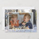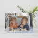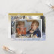 Cartões de foto de Natal Joyeux Noël com fundo bonito de neve. Sinta-se livre para alternar a imagem de fundo, se quiser. Carregue também a sua foto favorita da família de feriados. As costas são douradas com flocos de neve brancos com sua própria mensagem de Natal personalizada.