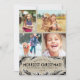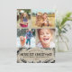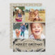 Cartões com fotos bonitos de férias da família com quatro fotos. Apresentando fundo de papel kraft com ramos de pinho decorados com "neve" reluzente. O texto contemporâneo diz: "Desejo-te o Natal mais feliz!" Personalizado com suas próprias fotos, nome(s) e ano. A proteção apresenta bolinhas de brilho prateado no fundo do papel kraft. [Nota, enquanto os elementos desta placa são concebidos para se parecerem com papel brilhante e kraft, trata-se de efeitos impressos - não será utilizada nenhuma tinta metálica ou brilho real para criar a placa.]