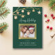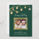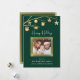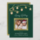 Abraçar o espírito do Natal com este cartão com fotos de férias luxuoso, destinado a impressionar. O fundo verde esmeralda profundo fornece uma sofisticada canvas para sofisticados sotaques de ouro, incluindo estrelas cintilantes e delicados ornamentos que trazem um brilho festivo. A fotografia favorita de sua família está elegantemente centrada em uma rica estrutura de ouro, fazer-a um ponto focal do design. A elegante caligrafia "Felizes Feriados" convida a um relacionamento caloroso e pessoal. Compartilhe seu amor e saudações com este cartão maravilhosamente trabalhado que incorpora a alegria e o esplendor da temporada de festas.