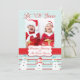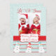 Azul claro e Cartões de foto de Natal vermelho com bonitinhos de neve e flocos de neve e o ditado "Deixe nevar". Um design bonito combinado com elementos capríticos faz disto uma maneira elegante e divertida de enviar as suas Cartões de natal de Natal. Substitua a foto do exemplo. Adicione seus nomes, monograma inicial ou Saudação de Natal.