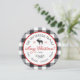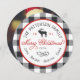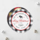 cartões com fotos de feriado personalizados com barato simples para personalização. Esta design de diversão apresenta uma forma recortada em círculo com fundo xadrez de verificação de búfalos, um gráfico de renas e uma tipografia rústica moderna em cores de cinza vermelha, branca e carvões. O texto diz "Feliz Natal" em uma letra de script de tendência. Personalize-o com seus nomes familiares, o ano ou outro texto personalizado. O verso tem espaço para fotos ou texto adicional. Use as ferramentas de design para editar o texto, adicionar mais fotos e criar um Cartões de foto de Natal redondo exclusivo.