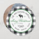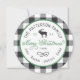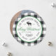 cartões com fotos de feriado personalizados com barato simples para personalização. Esta design de diversão apresenta uma forma recortada em círculo com fundo xadrez de verificação de búfalos, um gráfico de renas e uma tipografia rústica moderna em cores verdes, brancas e de cinza de carvão. O texto diz "Feliz Natal" em uma letra de script de tendência. Personalize-o com seus nomes familiares, o ano ou outro texto personalizado. O verso tem espaço para fotos ou texto adicional. Use as ferramentas de design para editar o texto, adicionar mais fotos e criar um Cartões de foto de Natal redondo exclusivo.