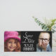 Seja criativo e personalize Salve a Data com uma foto do noivo e da noiva quando crianças e atuais ou qualquer foto que você goste.