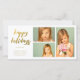 Ouro bonito, na moda, original que rotula boas festas a mensagem de cumprimento do cartão com fotos.