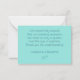 Não há crianças nos cartões de casamento. Personalize uma mensagem curta sobre cartões azul-verdes e turquesas. O texto impresso é uma cinza com sombra azul e um minúsculo coração é impresso na parte inferior. A mensagem de exemplo é, "Nós respeitosamente pedimos que nossa recepção de casamento seja feita apenas de convidados com mais de dezoito anos. Obrigado pela compreensão." Altere a redação para incluir a cerimônia, ou "dia do casamento", ou o que você precisar. Altere o tamanho da placa desde que o texto ajustado o espaço e esteja bem longe das bordas da placa. O reverso é azul ciano-claro sólido como a frente.