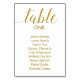 Guie seus convidados para a mesa adequada com este elegante branco com cartões de casamento de texto dourado. Personalize o número da tabela e o nome do convidado.