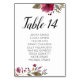 Guie seus hóspedes para a mesa deles com esses cartões florais elegantes de assentos. Personalize o número da tabela e o nome do convidado. Parte da coleção Burgundy.