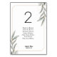 Cartão de Número de Tabela de Nomes de Convidado de Gerência