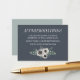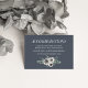 Insira esses cartões elegantes nos seus convites de casamento para informar os convidados de fora da cidade sobre os arranjos de hotel ou códigos de grupo. Cartões azul-cinza defumados escuros apresentam letras brancas elegantes e um agrupamento de flores de anemone creme e galhos de eucalipto verde-sage empoeirado. Coordenam com o nosso conjunto de convites de casamento Anemone e Eucalyptus.