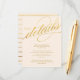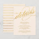 Cartões de inserção com grafia moderna em champanhe e dourado que dizem "Os detalhes" e texto personalizável abaixo. Perfeito para incluir informações de direções e acomodações com o convite de casamento.