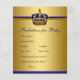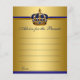 Jogos de chá de bebê do príncipe Previsões para cartões de chá de bebê e Conselho para os Pais no verso com bela coroa azul real e dourada em um fundo azul real e dourado. Esses cartões de previsões e conselhos do príncipe para o bebê podem ser personalizados para o seu evento adicionando suas próprias perguntas e texto. Basta ter seus convidados para preenchê-los e o que chegar mais perto das previsões ganha um prêmio. Certifique-se de guardar todos os cartões e salvá-los como lembrança do bebê.