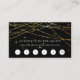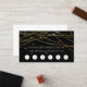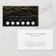 Cartões de fidelidade para maquiadores, esteticistas, cabeleireiros, salões ou spas apresentam cartazes brancos clássicos em um plano de fundo preto nítido, crocado por fios de luzes de cordas de folhas falsas de ouro. Adicione o seu nome de empresa e a oferta de fidelidade do cliente abaixo com seis círculos de punchout e personalize a parte de trás com seus detalhes de contato.
