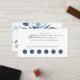 Cartões de visitas de fidelidade botânica elegantes em tons de azul apresentam seu nome e/ou nome comercial enquadrado por uma borda de folhagem azul de cor d'água. Adicione seus detalhes de contato e oferta de lealdade às costas, com seis círculos de punção.
